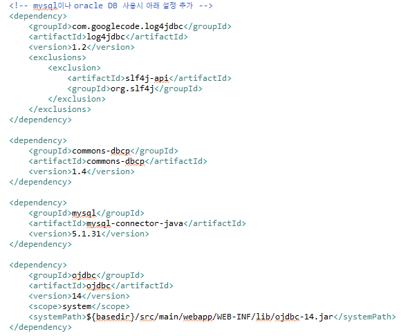 위의 datasource 파일을 보면 commons-dbcp, mysql-connector-java 부분 lib만 언급되어있지만